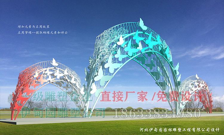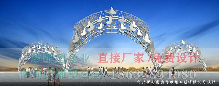 大門不銹鋼雕塑制作流程:設計圖紙→骨架放大→板材鍛造→整形修復→焊接成型→環(huán)氧底漆→氟碳面漆→分節(jié)運輸→工地安裝。