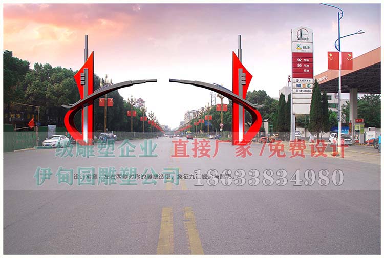 大門不銹鋼雕塑制作流程:設(shè)計圖紙→骨架放大→板材鍛造→整形修復(fù)→焊接成型→環(huán)氧底漆→氟碳面漆→分節(jié)運(yùn)輸→工地安裝。