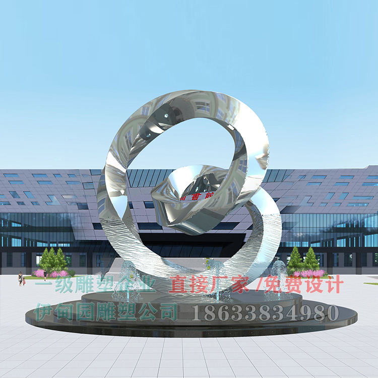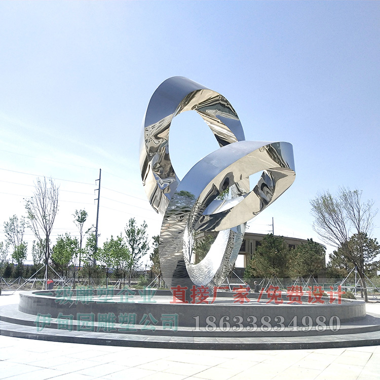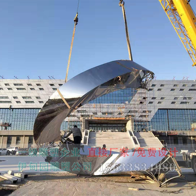 水紋鏡面不銹鋼雕塑,高11米,寬9米,安裝于吉林省某學校。雕塑從設(shè)計→訂制小樣→主體制作→物流運輸→現(xiàn)場安裝→細節(jié)處理,共歷時3個月。不銹鋼雕塑主骨架采用219*6mm鍍鋅鋼管制作,防腐性能好、牢固穩(wěn)定!所有承重骨架采用雙面滿焊,整體骨架完成后用防銹漆滿涂三遍。雕塑外輪廓為抽象e造型,外部裝飾板采用304#鋼板,緊貼著骨架外形進行拼裝,焊接。