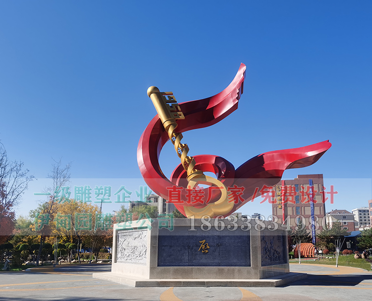 60周年校慶主題雕塑凸出我校1958年建校,由DNA鑰匙和飄逸的彩帶組成,校慶雕塑,以校園DNA研究為設(shè)計主題,鑰匙與DNA的組成,預(yù)示開啟醫(yī)學(xué)研究的大門;隨風(fēng)勁舞的彩帶象征自由與成功。