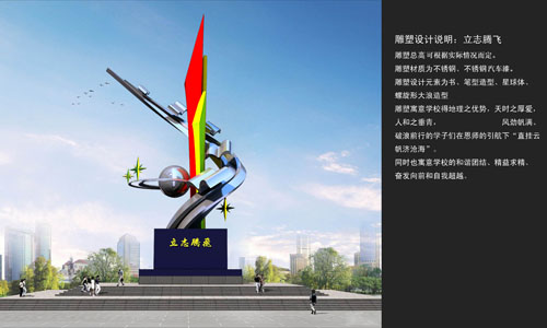 主題就是景觀的主題,也就是不銹鋼雕塑整體設(shè)計的一條思路,比如說是具有積極向上意識的學(xué)習(xí)概念雕塑,當(dāng)以孔子教學(xué)或兒童聽課等為主題來進(jìn)行不銹鋼雕塑的設(shè)計,這也就是我們所說的三大元素中的第一大設(shè)計元素。