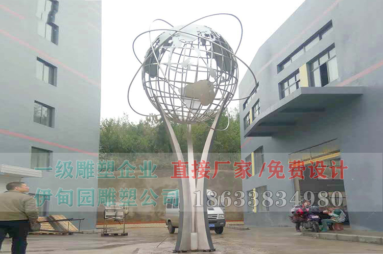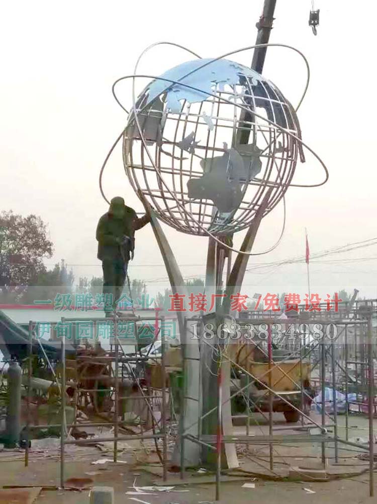 不銹鋼地球儀雕塑制作流程:確定設(shè)計(jì)圖→選購(gòu)原材料→鋼管彎弧→板材鍛造焊接→打磨拋光→噴防銹漆→現(xiàn)場(chǎng)組裝→細(xì)節(jié)處理→雕塑驗(yàn)收。校園地球儀雕塑造型和尺寸可定制。