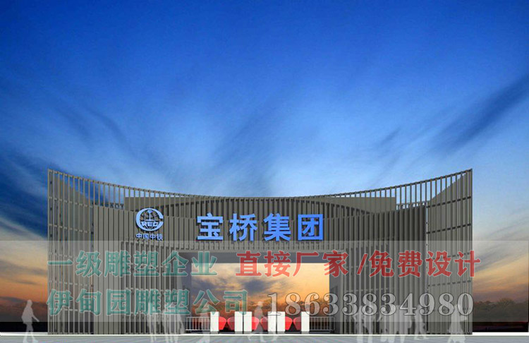 大門不銹鋼雕塑制作流程:設計圖紙→骨架放大→板材鍛造→整形修復→焊接成型→環(huán)氧底漆→氟碳面漆→分節(jié)運輸→工地安裝。