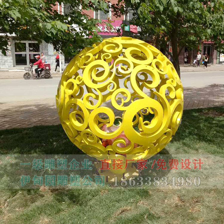 不銹鋼鏤空球雕塑適用于公司大樓、園林景觀及廣場(chǎng)景觀等公共空間,景觀球雕塑不僅能滿足人們的審美需要, 提高人的精神素質(zhì), 它更能深入公眾生活, 引導(dǎo)公眾文化, 充分體現(xiàn)以“人文”的作用。